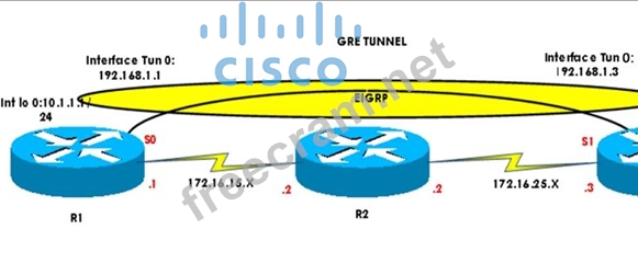 Question 212: Refer to the exhibit. After configuring GRE between two rout...