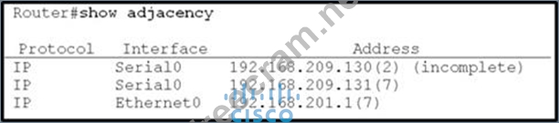 After a clear ip arp or a clear adjacency command, the router marks the adjacency as incomplete.