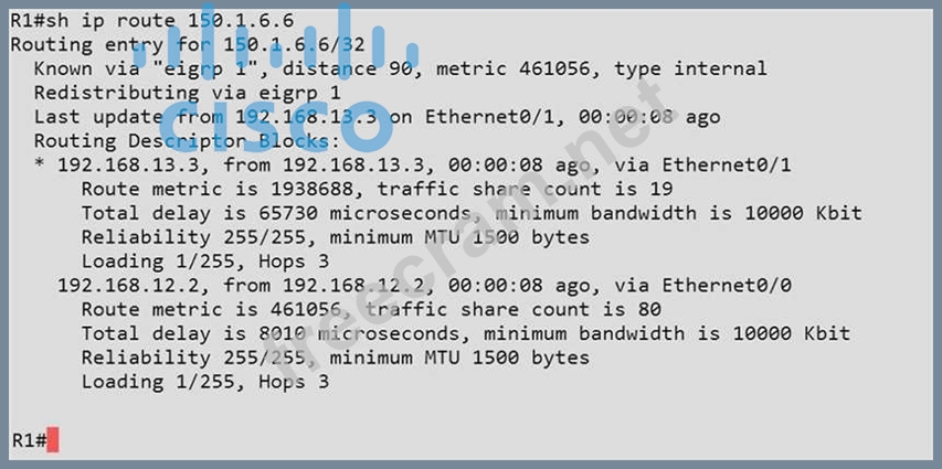 We see that it is 150.1.6.6, so we issue the "show ip route 150.1.6.6" command from R1 and see this: