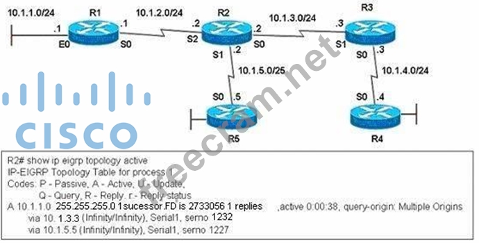 *Mar 20 12:15:23: %DUAL-3-SIA. Route 10.1.1.0/24 stuck-in-active state in IP-EIGRP 1. Cleaning up The network administrator issued the show ip eigrp topology active command on R2 to check the status of the EIGRP network. Which statement best describes the reason for the error messages?