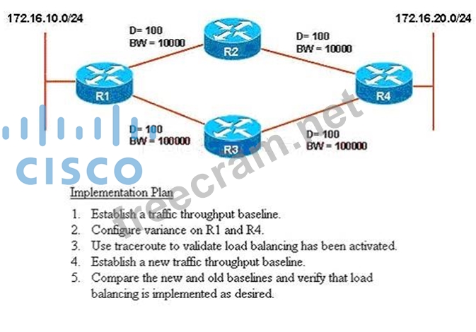 ROUTE.com is planning to implement EIGRP load balancing for traffic between hosts on the