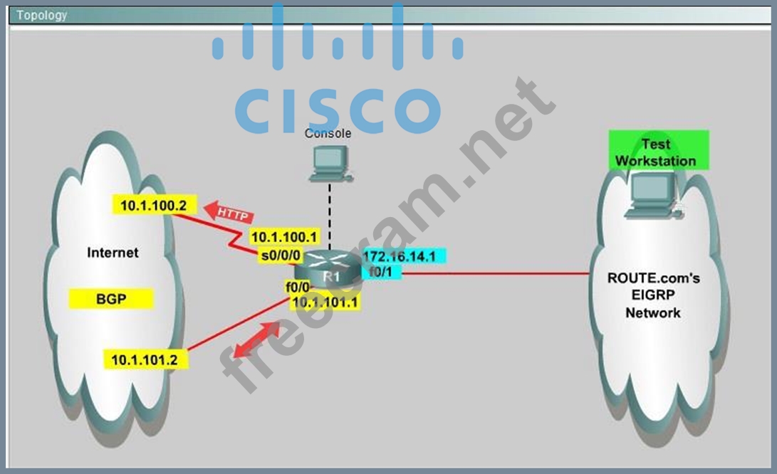 Choose and configure the appropriate path selection feature to accomplish this task. You may use the Test Workstation to generate HTTP traffic to validate your solution.