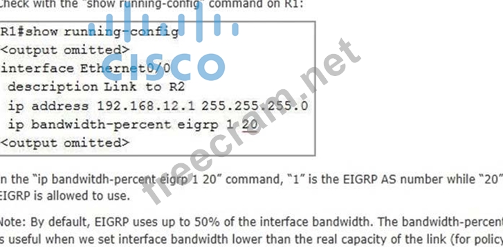 What percent of R1's interfaces bandwidth is EIGRP allowed to use?