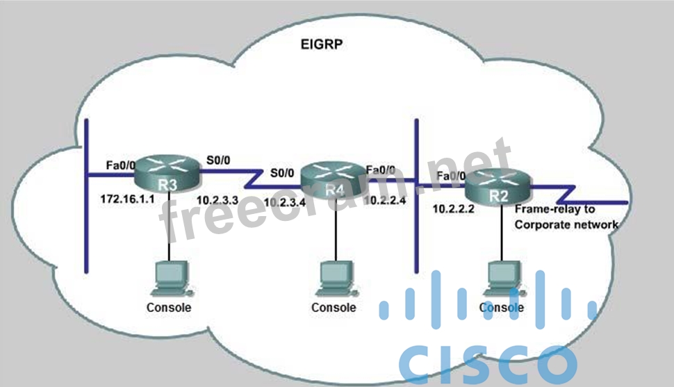 In conclusion, we will use the ip summary-address eigrp 123 10.2.0.0 255.255.0.0 at the interface s0/0 of R4 to summary.