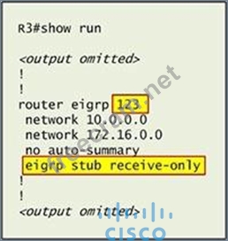 Notice that R3 is configured as a stub receive-only router. The receive-only keyword will restrict the router from sharing any of its routes with any other router in that EIGRP autonomous system. This keyword will also prevent any type of route from being sent. Therefore we will remove this command and replace it with the eigrp stub command: