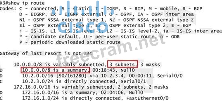 But in your real exam, if you don't see the line "10.0.0.0/8 is a summary, Null0" then you can summarize using the network 10.2.0.0/16. This summarization is better because all the pings can work well.