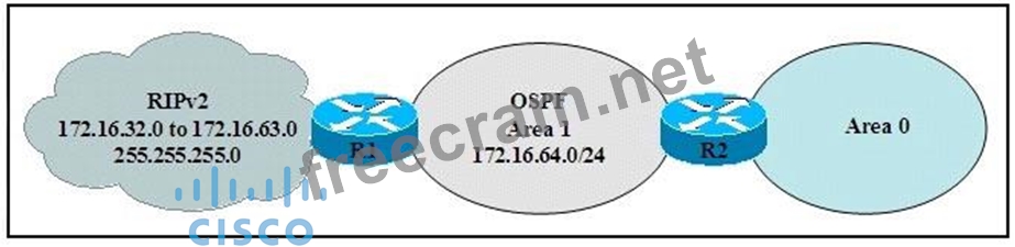 However, the administrator wants to configure the network so that instead of 32 external type-5 LSAs flooding into the OSPF network, there is only one.