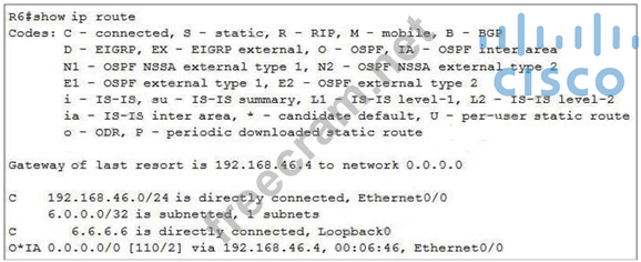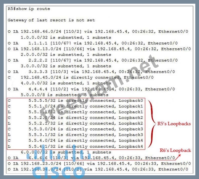 Areas of Router 5 and 6 are not normal areas, inspect their routing tables and determine which statement is true?