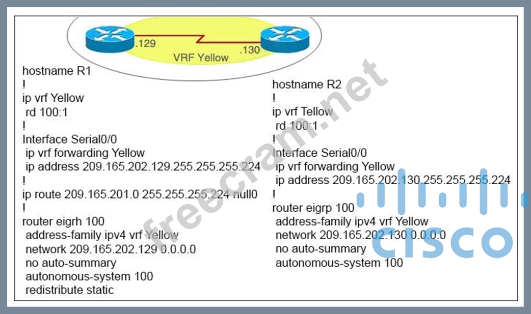 Question 81: What does the show ip route vrf CISCO command display?...