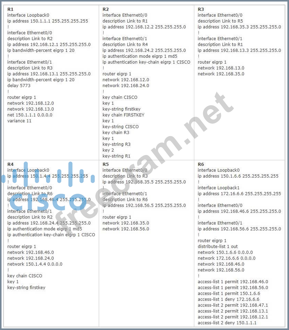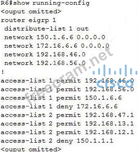 Question 385: (Exhibit) The configuration of R1 to R6 are posted below for...