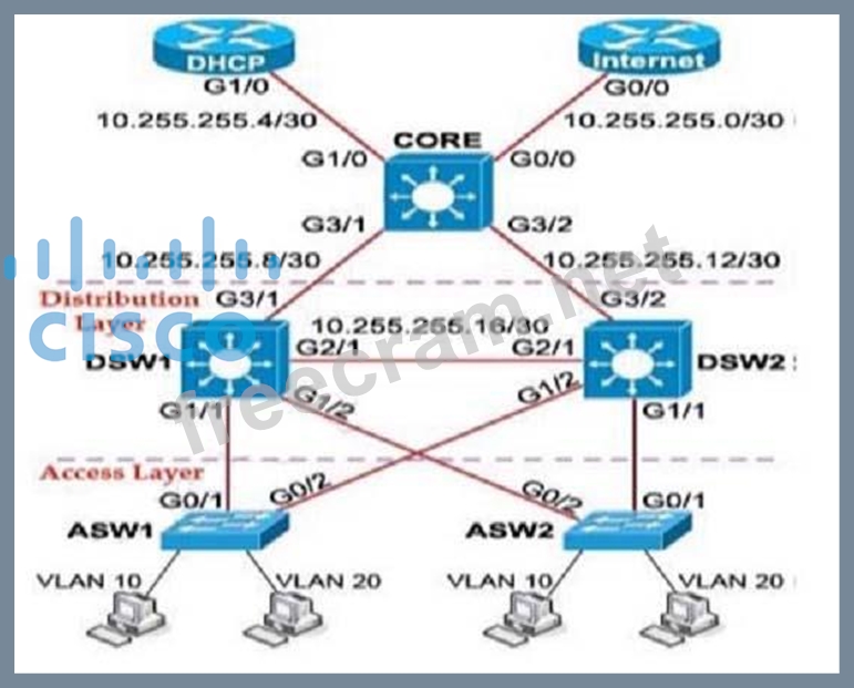 Refer to the exhibit. Which option prevents routing updates from being sent to the DHCP router, while still allowing routing update messages to flow to the Internet router and the distribution switches?