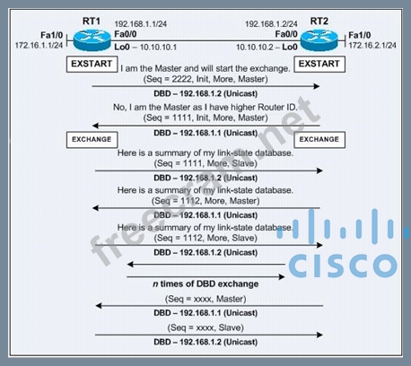 When ospf is forming an adjacency, in which state does the actual exchange of information in the link-state database occur?