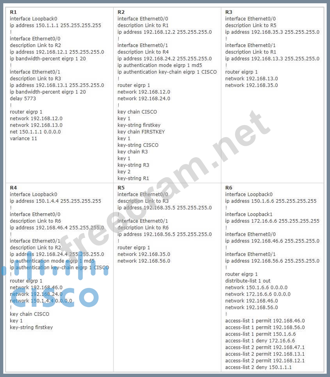 Question 45: (Exhibit) The configuration of R1 to R6 are posted below for...