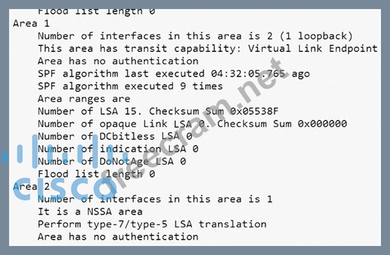 You have been asked to evaluate an OSPF network setup in a test lab and to answer questions a customer has about its operation. The customer has disabled your access to the show running-config command.