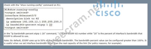 What percent of R1's interfaces bandwidth is EIGRP allowed to use?