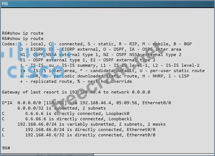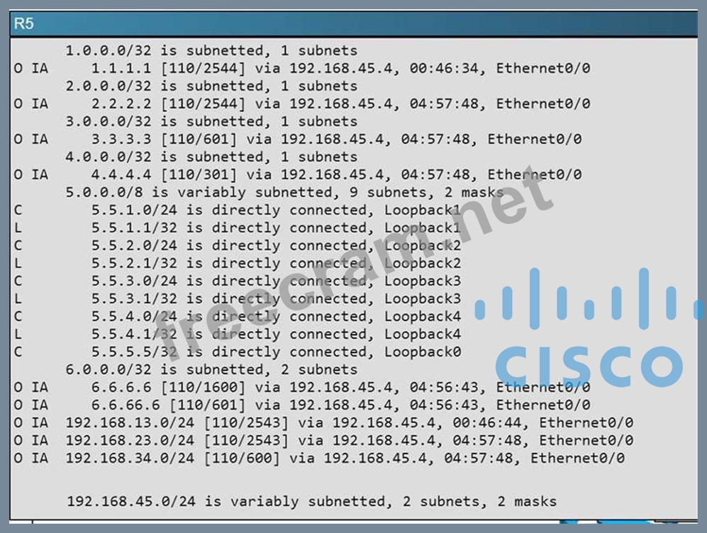 Areas of Router 5 and 6 are not normal areas. Inspect their routing tables and determine which statement is true.