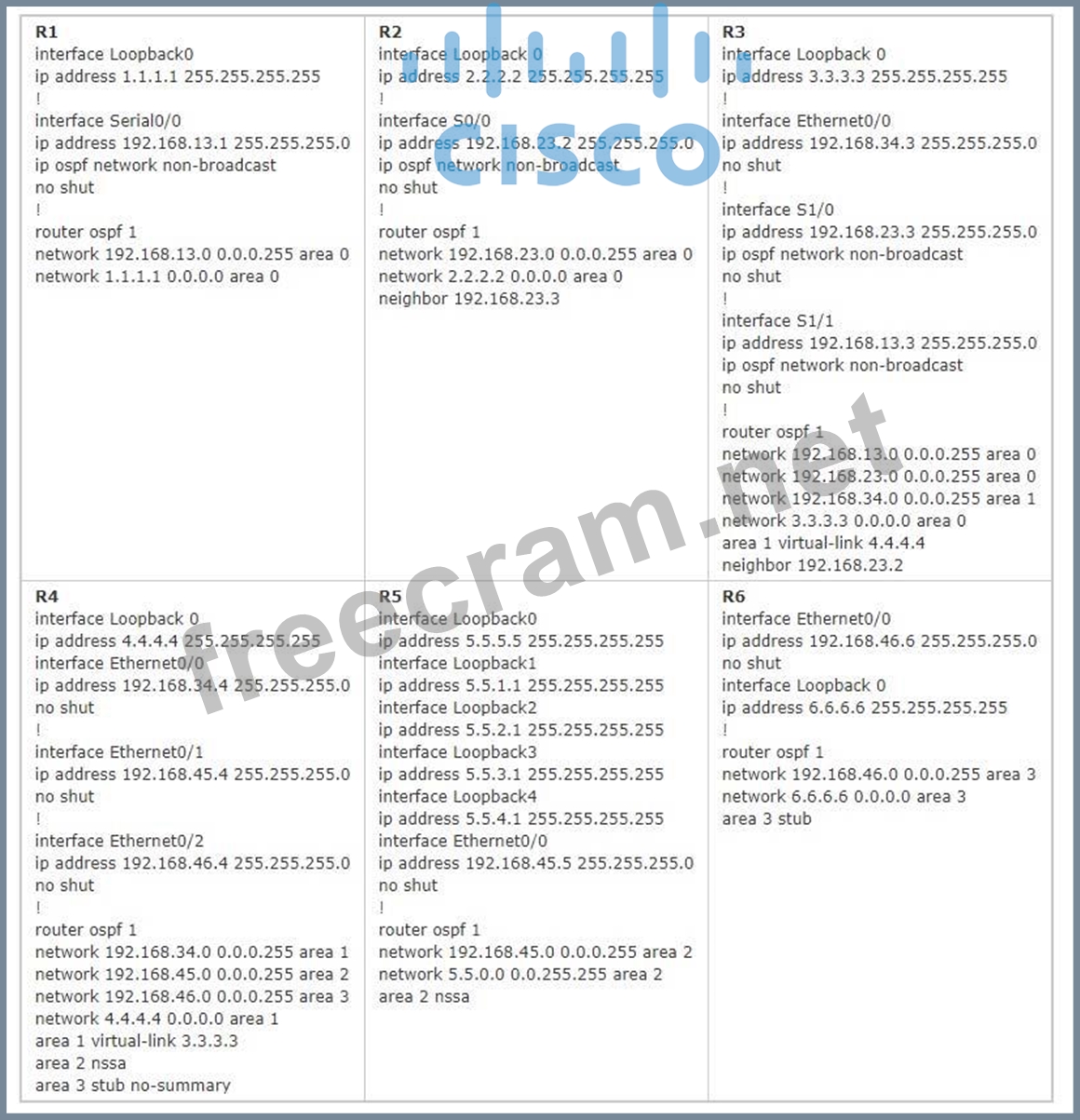 Question 430: (Exhibit) The configuration of R1 to R6 are posted below for...