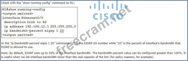 What percent of R1's interfaces bandwidth is EIGRP allowed to use?