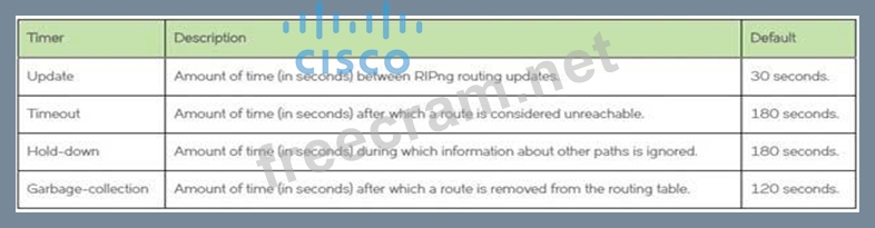 30 seconds. The response message is broadcast to all its RIP enabled interface.[8] Invalid Timer The invalid timer specifies how long a routing entry can be in the routing table without being updated. This is also called as expiration Timer. By default, the value is 180 seconds. After the timer expires the hop count of the routing entry will be set to 16, marking the destination as unreachable.