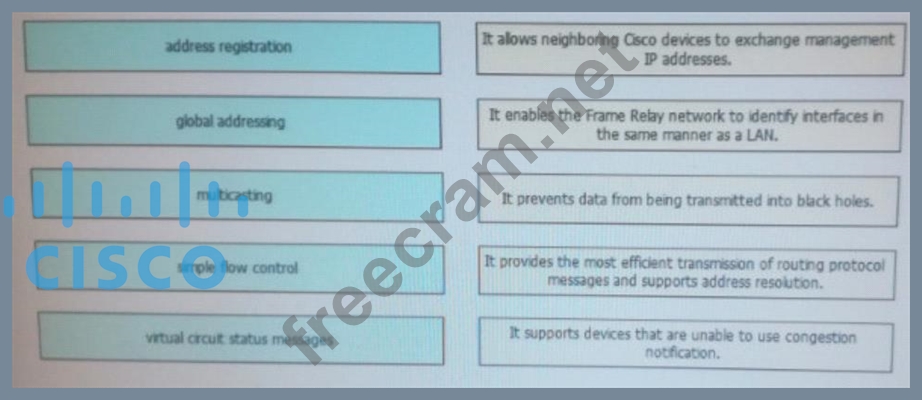 Drag and Drop the Frame Relay LMI extensions from the left onto the correct descriptions on the right.
