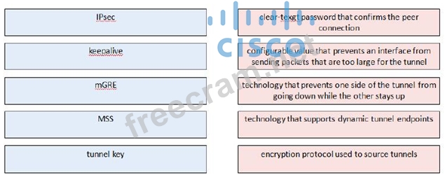Drag and drop the GRE features from the left onto the correct descriptions on the right.