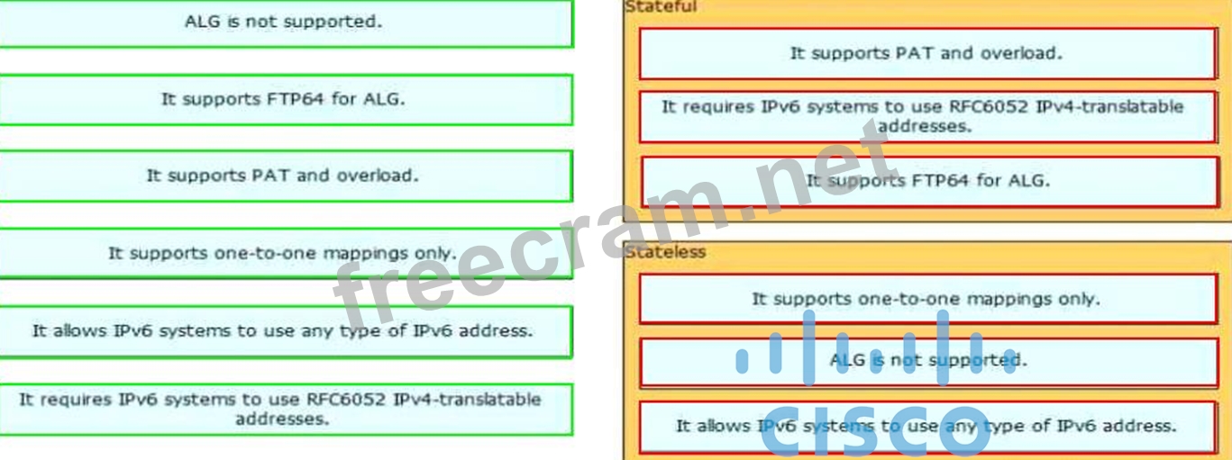 Question 28: Drag and drop the IPv6 NAT characteristic from the left to t...