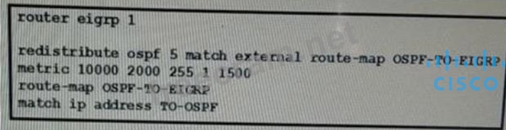 Which routes from OSPF process 5 are redistributed into EIGRP?