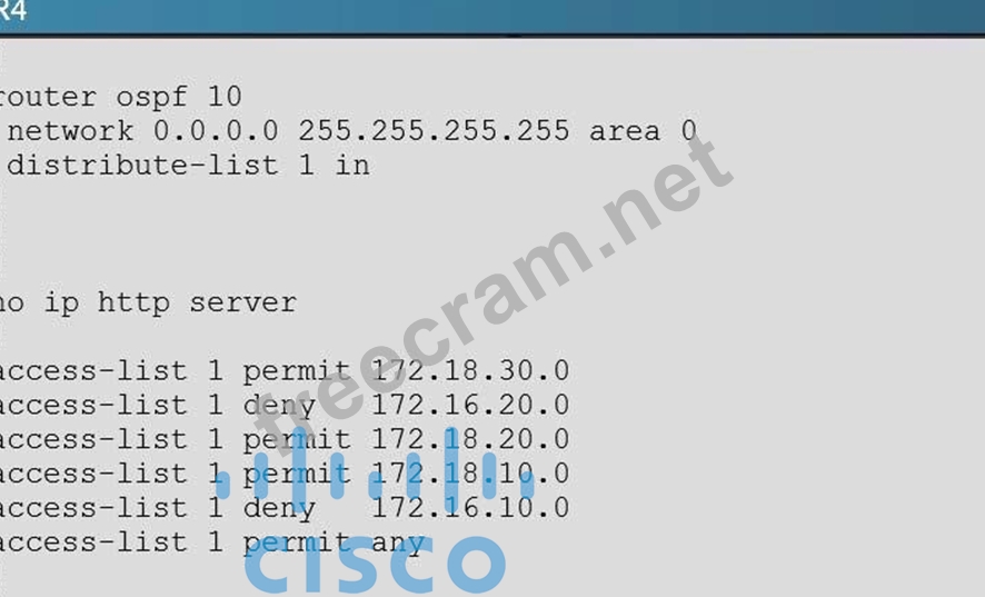 172.16.20.0/24. Identify which of the following is the issue preventing route entries being installed on R4 routing table?