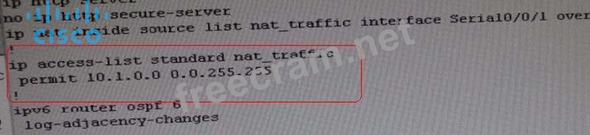From above snapshot we are able to see that IP needs to be PAT to serial 0/0/1 to reach web server IP (209.65.200.241). But in access-list of NAT IP allowed IP is 10.1.0.0/16 is allowed & need 10.2.0.0 /16 to