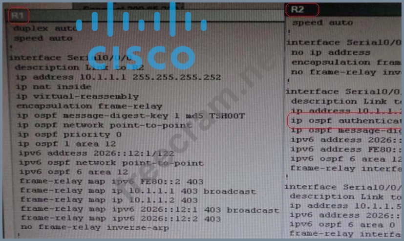 5. Change required: On R1, for IPV4 authentication of OSPF command is missing and required to configure------ ipospf authentication message-digest