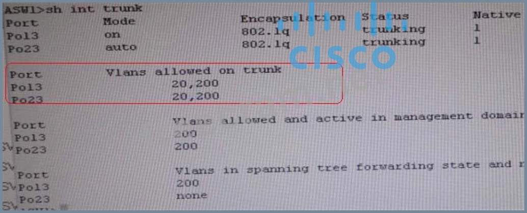3.We need to check on ASW 1 trunk port the trunk Po13 & Po23 were receiving VLAN 20 &