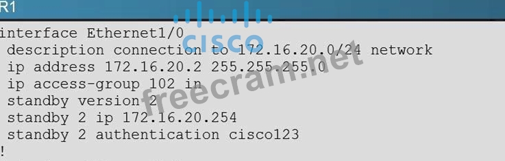 'Mar 26 11:17:53.089: HSRP: Et1/0 Grp2 Hello out 172.16.20.2 Active pri 100 vIP 172.16.20.254