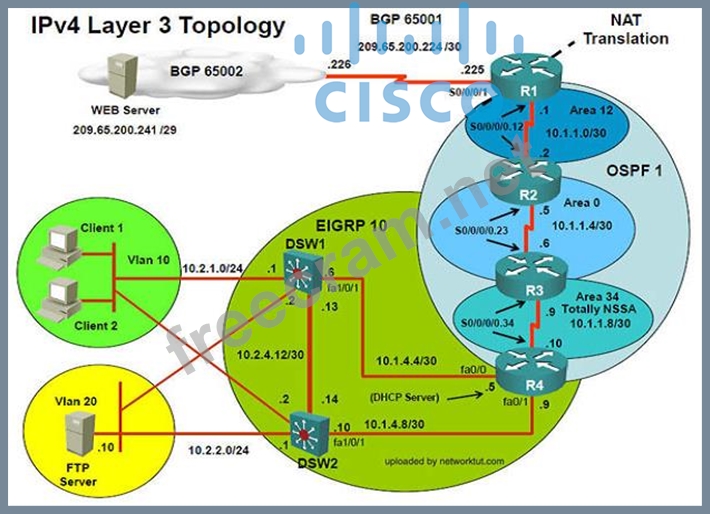 In the IPv4 layer 3 topology, R1, R2, R3, and R4 are running OSPF with an OSPF process number 1.