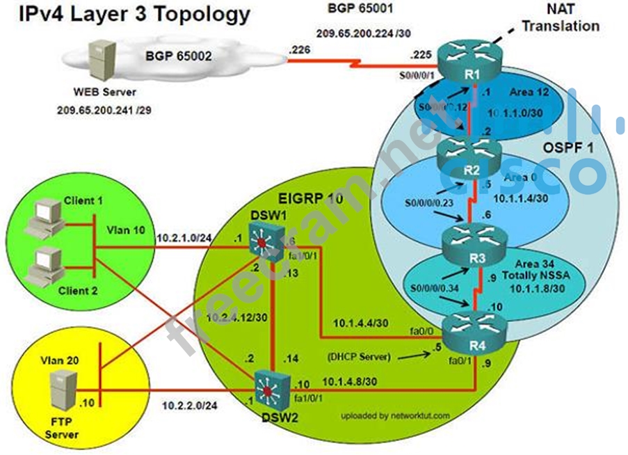 In the IPv4 layer 3 topology, R1, R2, R3, and R4 are running OSPF with an OSPF process number 1.
