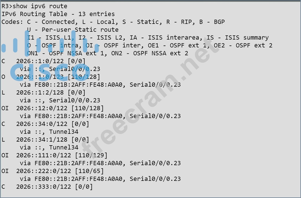 The implementation group has been using the test bed to do an IPv6 'proof-of-concept1. After several changes to the network addressing and routing schemes, a trouble ticket has been opened indicating that the loopback address on R1 (2026::111:1) is not able to ping the loopback address on DSW2 (2026::102:1).