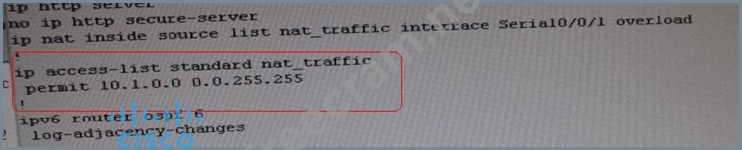 From above snapshot we are able to see that IP needs to be PAT to serial 0/0/1 to reach web server IP (209.65.200.241). But in access-list of NAT IP allowed IP is 10.1.0.0/16 is allowed & need