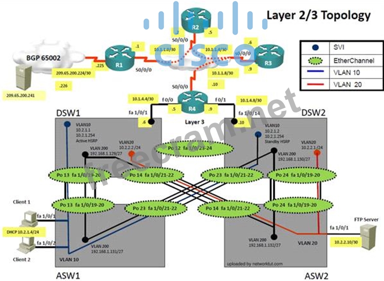 The company has created the test bed shown in the layer 2 and layer 3 topology exhibits.