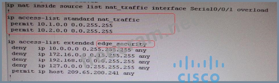 R1 is also providing NAT translations between the inside (10.1.0.0/16 & 10.2.0.0/16) networks and outside (209.65.0.0/24) network.