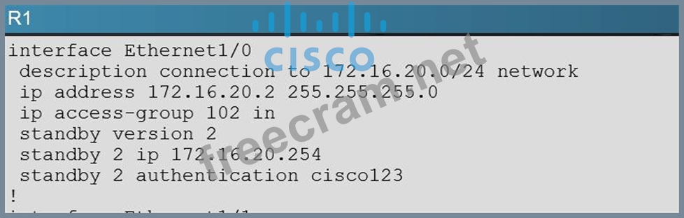 'Mar 26 11:17:47.439: HSRP: Et1/0 Grp 2 Hello out 172.16.20.2 Active pri 100 vIP