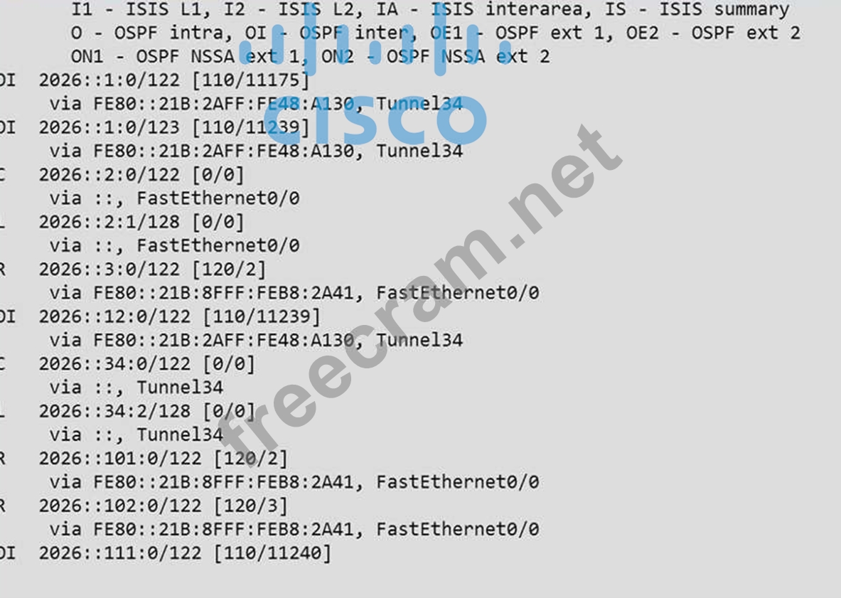 The implementation group has been using the test bed to do an IPv6 'proof-of-concept1. After several changes to the network addressing and routing schemes, a trouble ticket has been opened indicating that the loopback address on R1 (2026::111:1) is not able to ping the loopback address on DSW2 (2026::102:1).