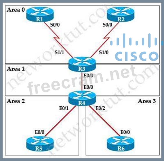 Question 56: (Exhibit) Connectivity from R3 to R4, R5 and R6 has been los...