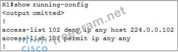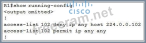 As we see R1 is using access-list 102 to filter traffic coming to interface E1/0 (inbound direction). Continue checking the access-list 102 of R1: