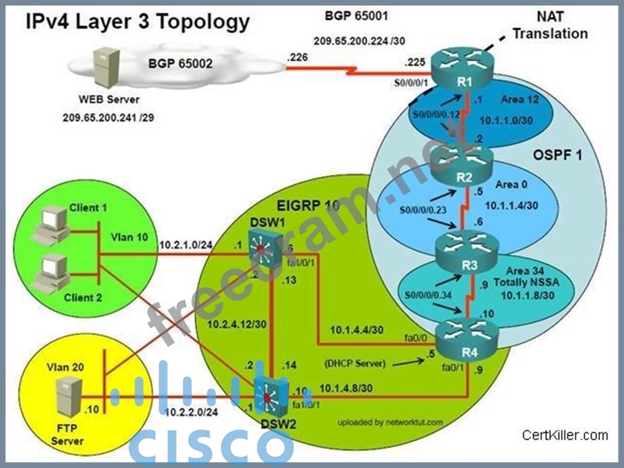 Scenario: The implementation group has been using the test bed to do a 'proof-of-concept' that requires both Client 1 and Client 2 to access the WEB Server at 209.65.200.241. After several changes to the network addressing, routing schemes, DHCP services, layer 2 connectivity, FHRP services, and, device security, a trouble ticket has been opened indicating that Client 1 cannot ping the 209.65.200.241 address.