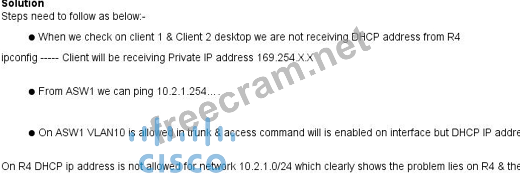 Scenario: The implementation group has been using the test bed to do a 'proof-of-concept' that requires both Client 1 and Client 2 to access the WEB Server at 209.65.200.241. After several changes to the network addressing, routing schemes, DHCP services, layer 2 connectivity, FHRP services, and, device security, a trouble ticket has been opened indicating that Client 1 cannot ping the 209.65.200.241 address.