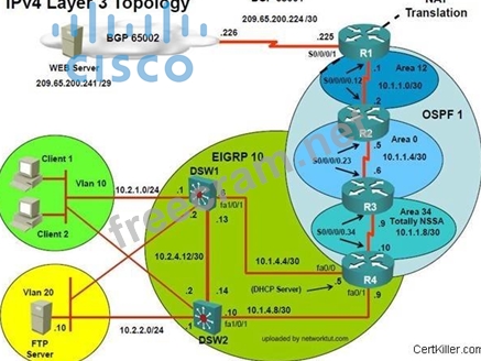 Scenario: The implementation group has been using the test bed to do a 'proof-of-concept' that requires both Client 1 and Client 2 to access the WEB Server at 209.65.200.241. After several changes to the network addressing, routing schemes, DHCP services, layer 2 connectivity, FHRP services, and, device security, a trouble ticket has been opened indicating that Client 1 cannot ping the 209.65.200.241 address.