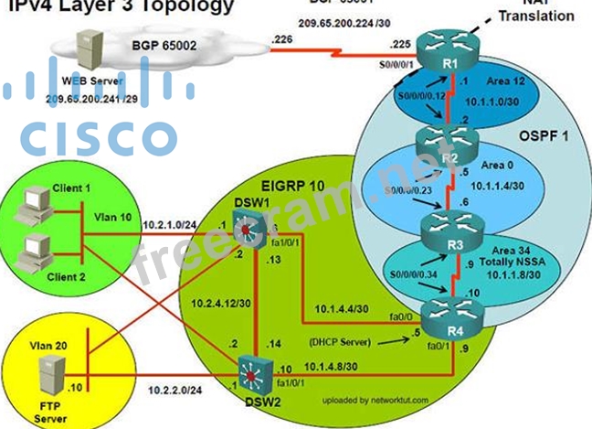 In the IPv4 layer 3 topology, R1, R2, R3, and R4 are running OSPF with an OSPF process number 1.