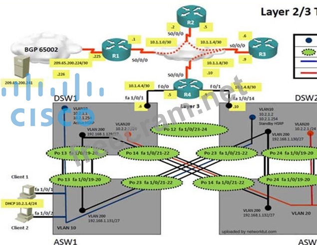 DSW1, DSW2 and R4 are running EIGRP with an AS of 10. Redistribution is enabled where necessary.