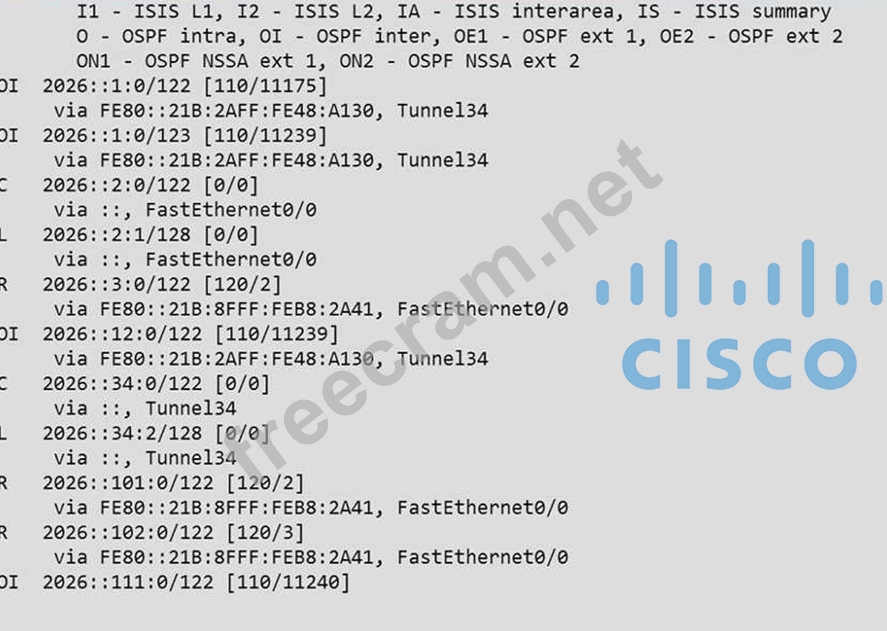 The implementation group has been using the test bed to do an IPv6 'proof-of-concept1. After several changes to the network addressing and routing schemes, a trouble ticket has been opened indicating that the loopback address on R1 (2026::111:1) is not able to ping the loopback address on DSW2 (2026::102:1).