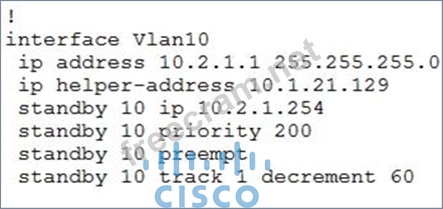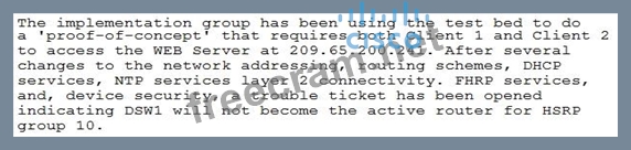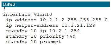 1. Since the problem is raised that DSW1 will not become active router for HSRP group 10