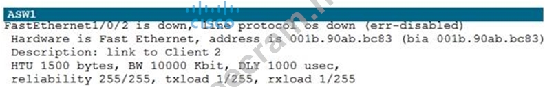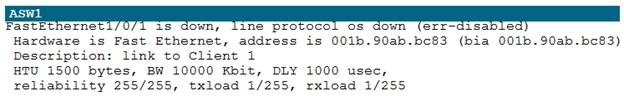 2. On ASW1 port Fa1/0/ 1 & Fa1/0/2 access port VLAN 10 was assigned but when we checked interface it was showing down Sh run ------- check for running config of int fa1/0/1 & fa1/0/2 (switchport access Vlan 10 will be there with switch port security command). Now check as below Sh int fa1/0/1 & sh int fa1/0/2
